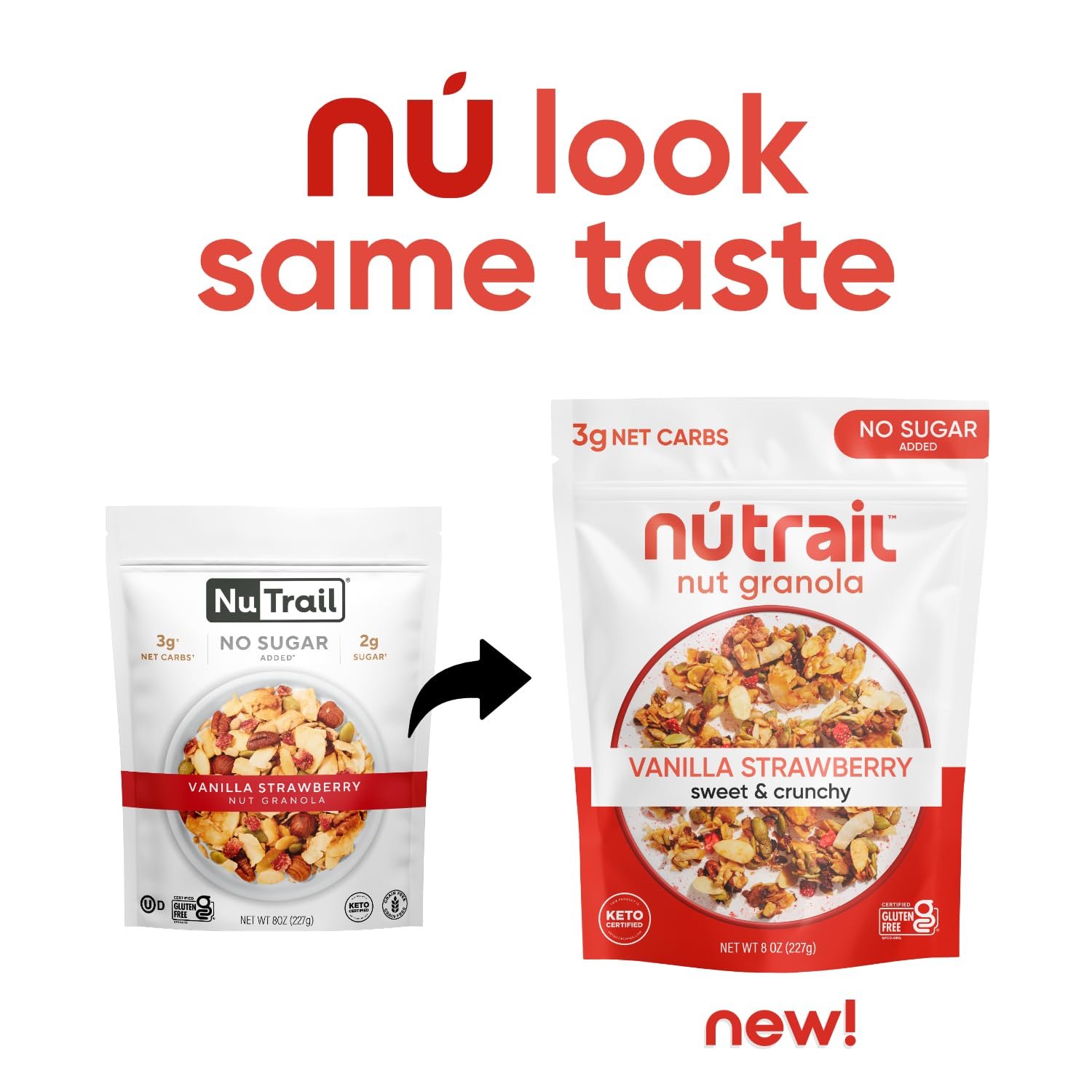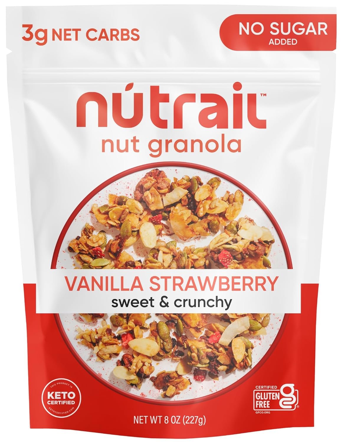 NuTrail Nut Granola Cereal, Vanilla Strawberry, No Sugar Added, Keto, Low Carb, Gluten Free, Grain Free, Healthy Breakfast 8 oz. 1 Count